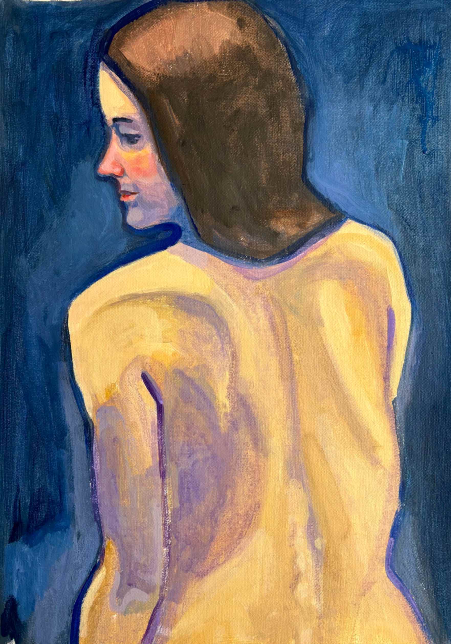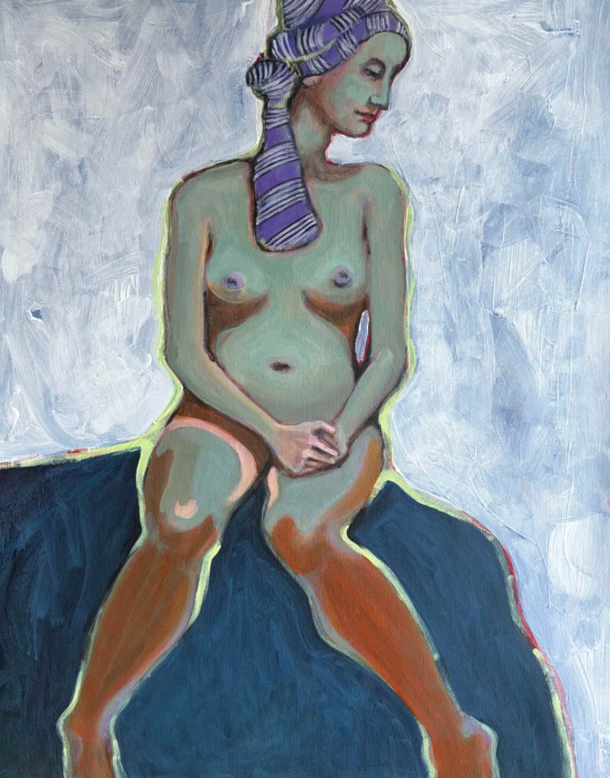 “Blue ” woman seated