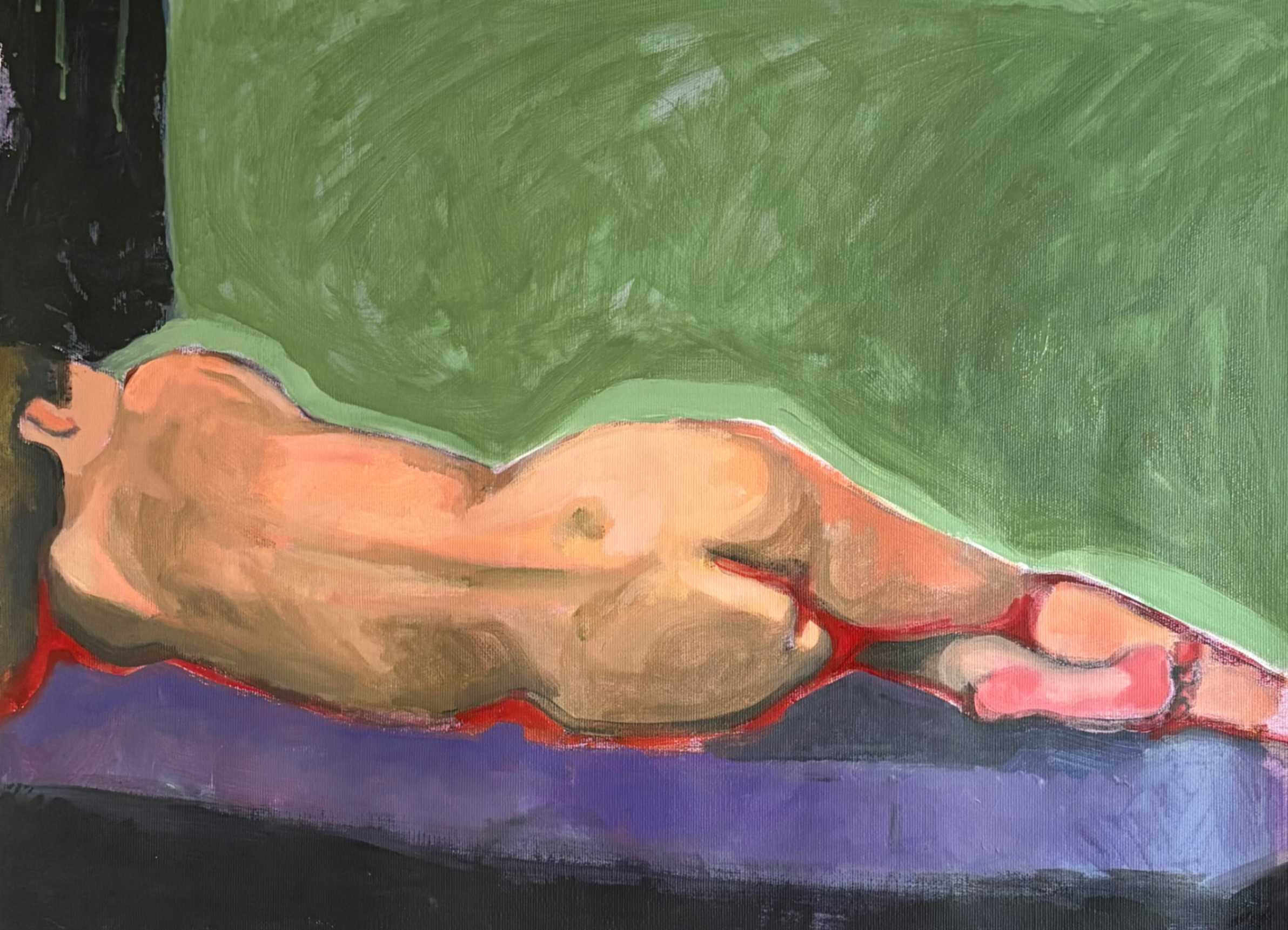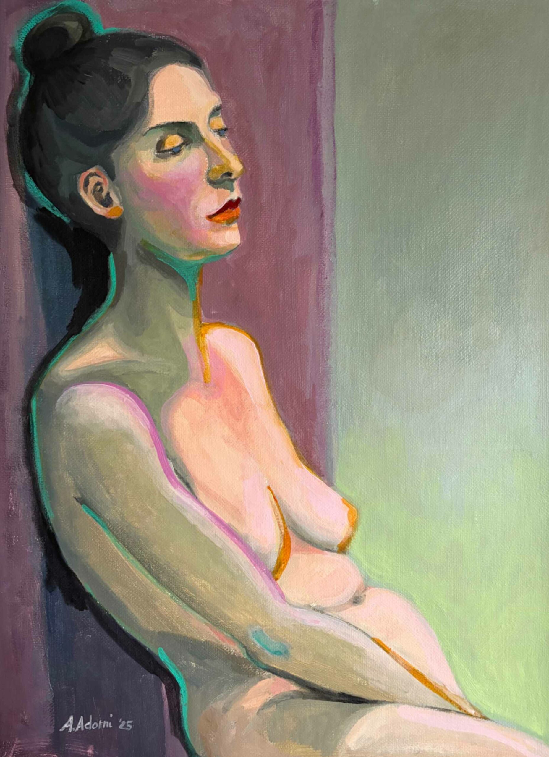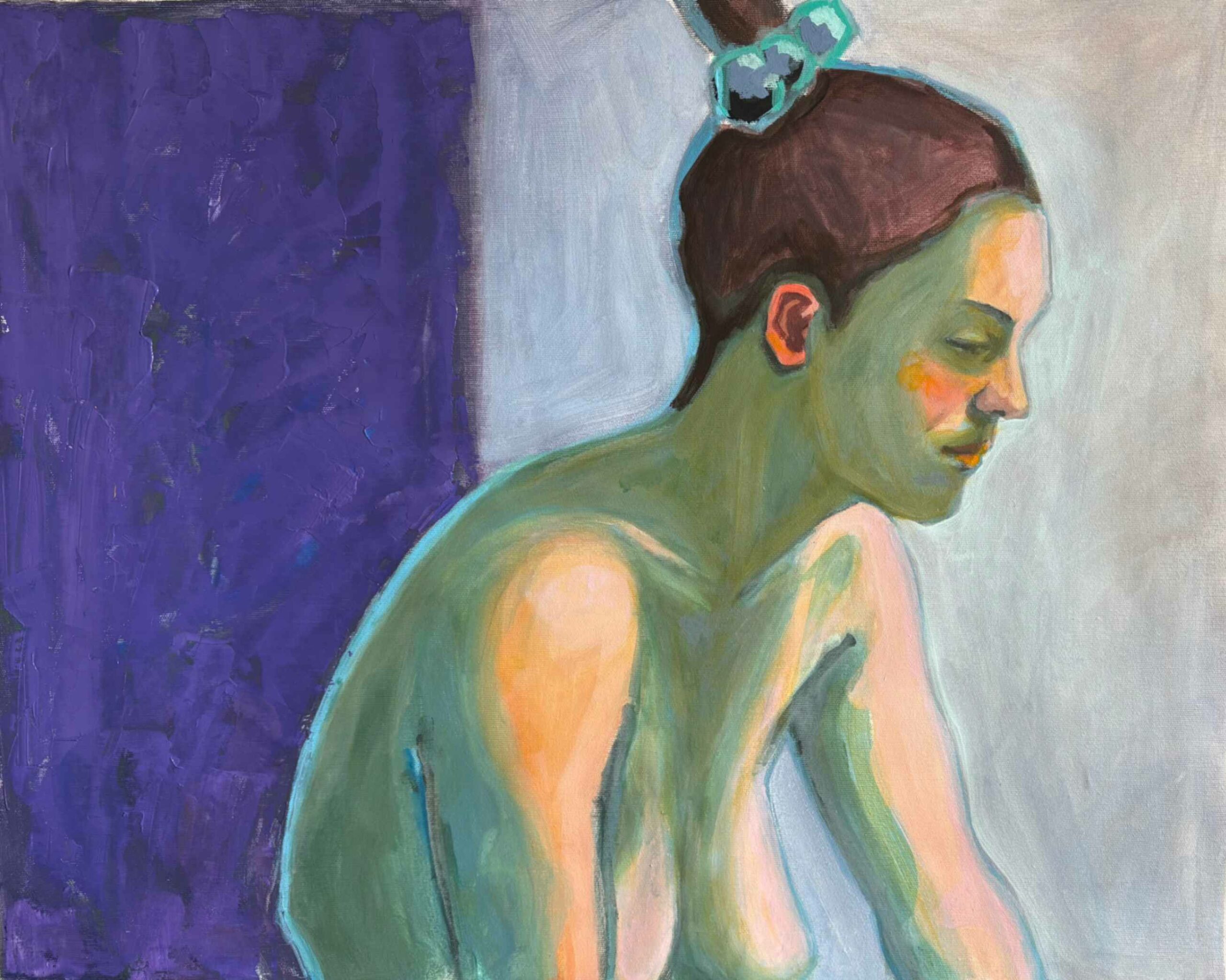 Woman on a violet wall